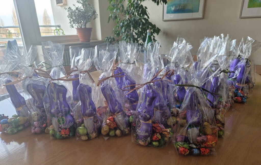 Aber unsere fleißigen „Osterhasen“ (Petra und Gerhard Wilms sowie Ute Senning) waren schon viel zeitiger vor Ort. Denn es galt, die Suche nach den Osternestern vorzubereiten und diese zu verstecken.
