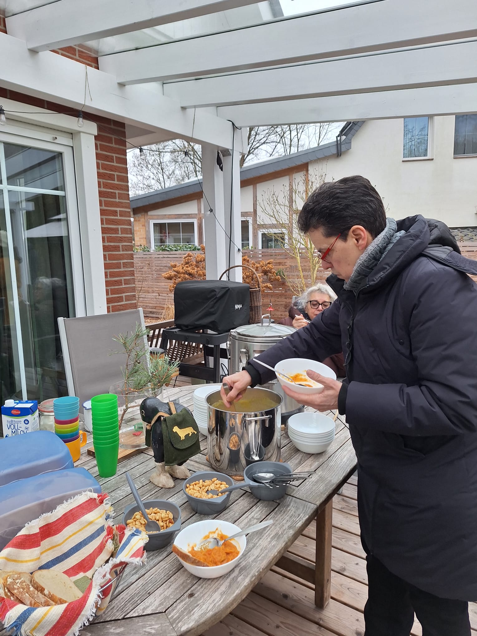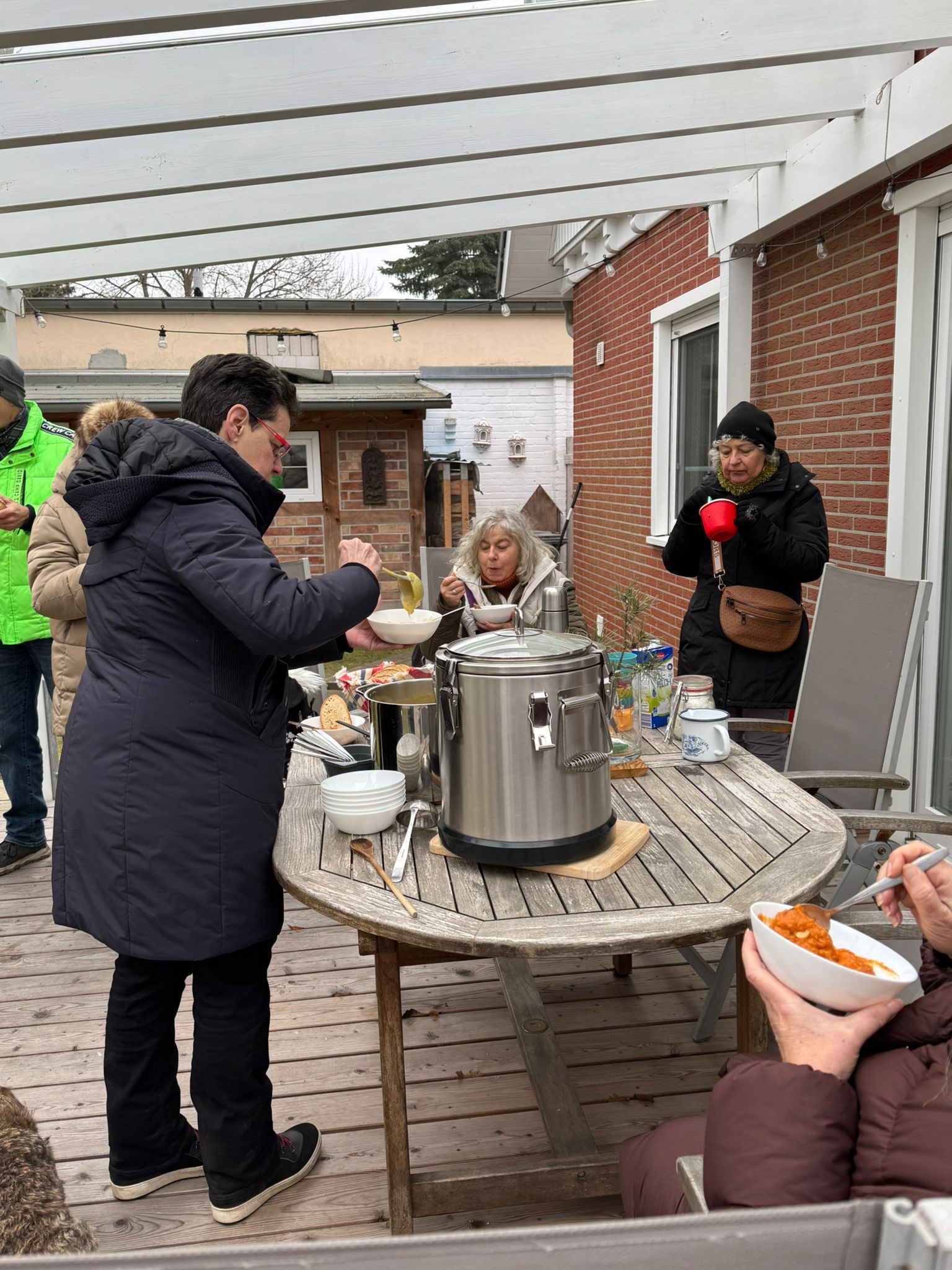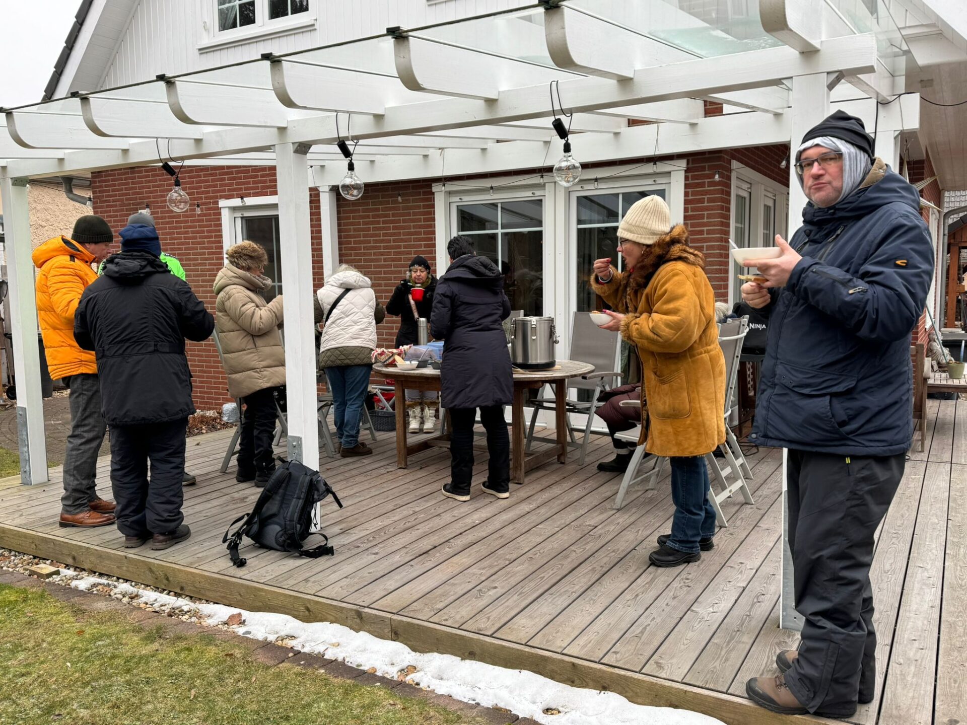 Für die menschlichen Begleiter gab’s zum Abschluss zur Belohnung und zum Aufwärmen einen Einkehrschwung im Garten von Bella und Donnie mit wunderbaren warmen Süppchen, Kaffee, lecker Kuchen und Klönsnack, bis uns die Kälte doch zu viel wurde.